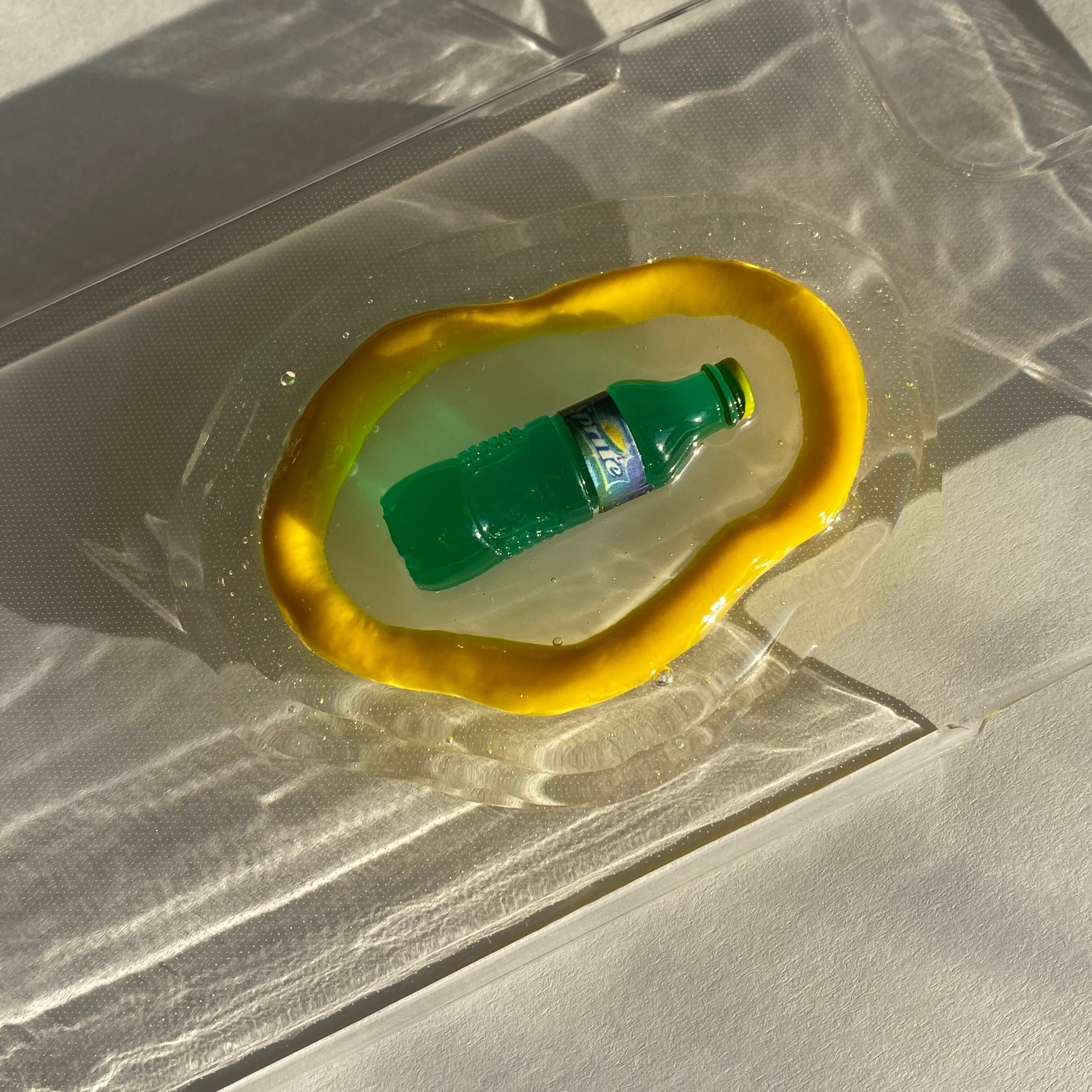 ドリンクの周りのウネウネの黄色の枠は樹脂粘土です。